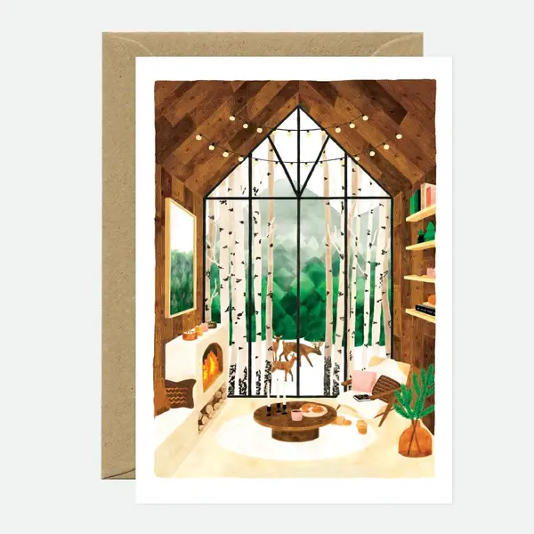 Deze wenskaart heeft een tekening van een sneeuwlandschap in Lapland. De kaart is blanco vanbinnen zodat je er je eigen wensen kan opschrijven. Ideaal om je persoonlijke kerstwensen per brief te versturen. Wie krijgt er nu niet graag post?