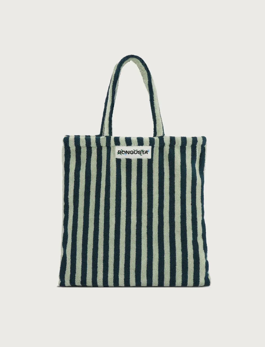 Deze gestreepte tas in deep teal groen is gemaakt van gekamd katoen met 600 gsm-gewicht. Gekamd katoen is een hoogwaardig katoen dat zorgt voor een zijdezacht effect, terwijl de kleuren levendig blijven. Luxueus en absorberend, dus perfect om bijvoorbeeld mee te nemen naar de sportles, yoga, strand of sauna.