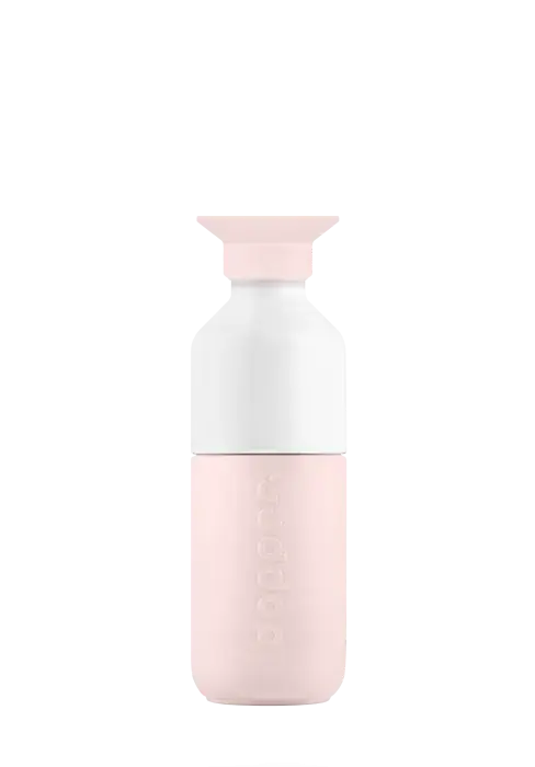 De roze fles met beker en dop is ideaal onderweg. Neem de drinkfles mee naar school, naar het strand, tijdens het sporten, op reis,... Tank bij met kraantjeswater en draag zo bij tot een betere wereld. Door je Dopper te gebruiken zorg je er voor dat er per jaar 104 wegwerpflessen minder verkocht worden.