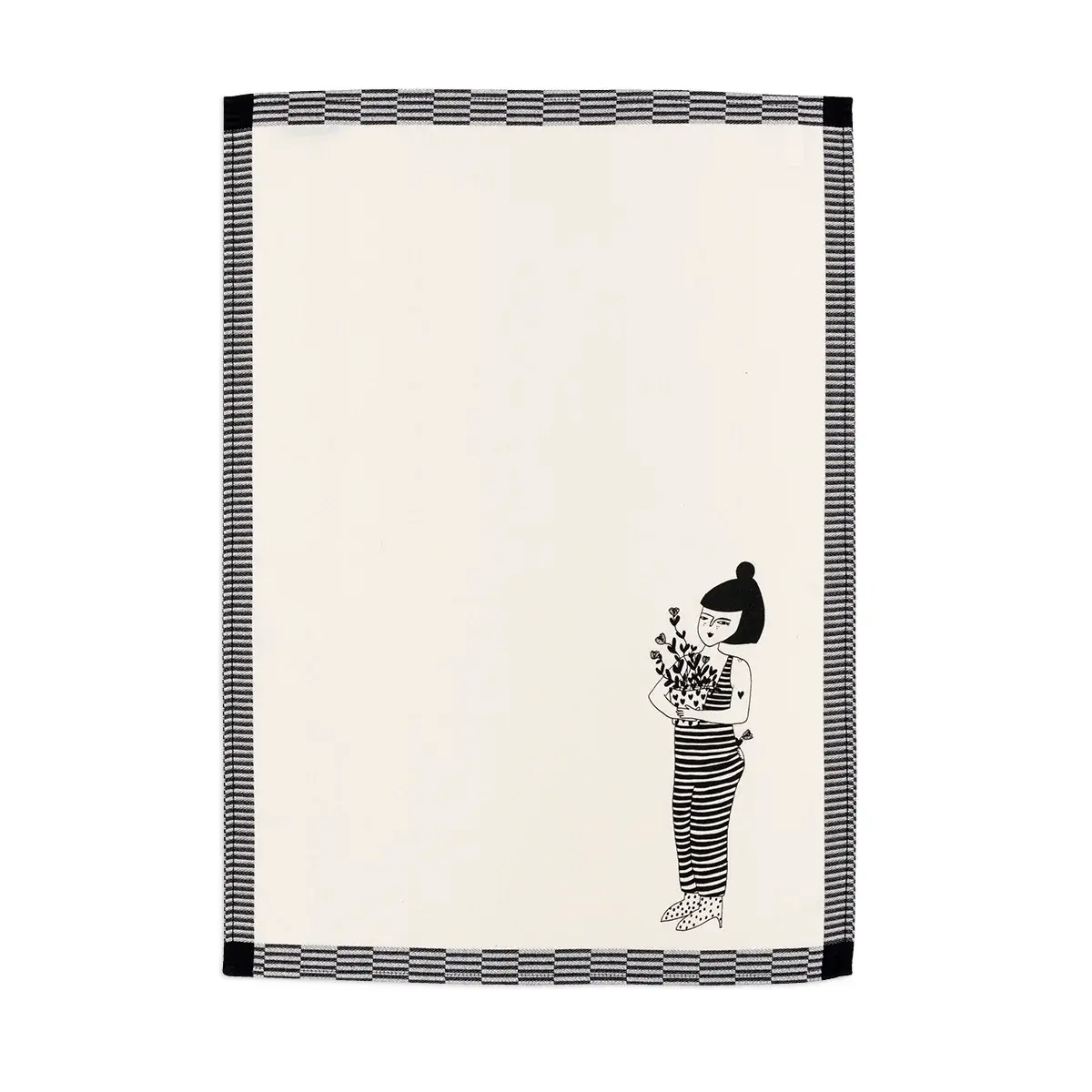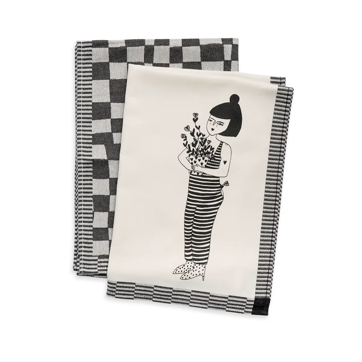 Deze set bevat 2 katoenen keukenhanddoeken. Op 1 ervan staat de illustratie 'Lilli Flowerpot'. De andere is zwart geblokt. Deze keukenhanddoeken krijgen zeker een leuk plaatsje in jouw keuken.