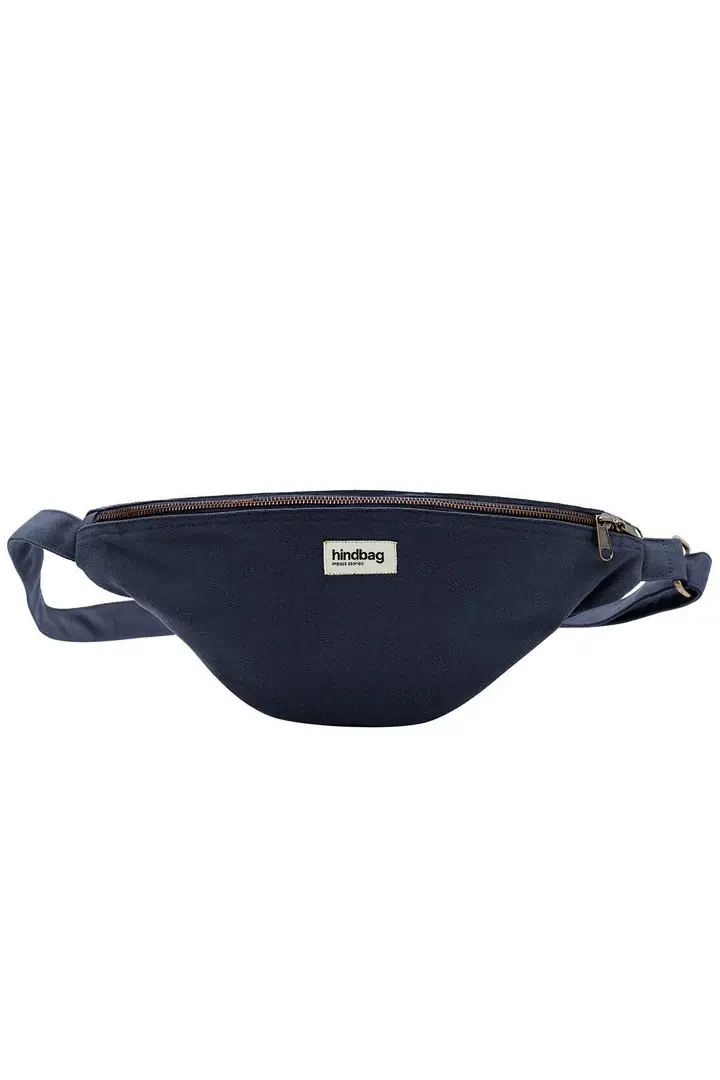 Deze 'banaan' is ideaal voor al je essentials. De fannypack heeft onderverdelingen, waardoor al je spullen netjes geordend blijven. Er is ook een vakje met rits aan de buitenkant. Je kan de riem verstellen zodat je de tas zowel over een dikke winterjas als over een zomers T-shirt kan dragen. De donkerblauwe kleur 'Marine' past perfect bij de rest van de Hindbag-collectie. Unisex model dat iedereen mooi staat!