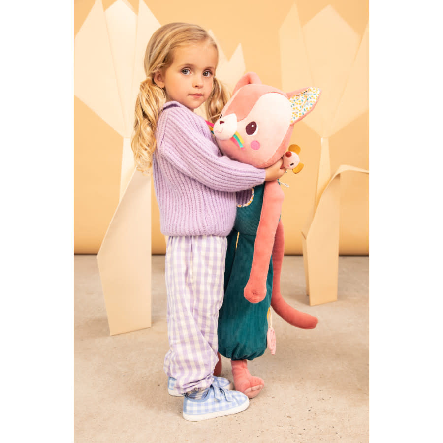 Jeanne de poes is een perfecte speelkameraad voor kinderen vanaf 6 maanden. Ze is zacht en leuk om te knuffelen of om mee te spelen. Een leuk cadeautje waar je elk kind blij mee maakt. Jeanne de grote ontdekkingskat is een fijn geboortegeschenk.