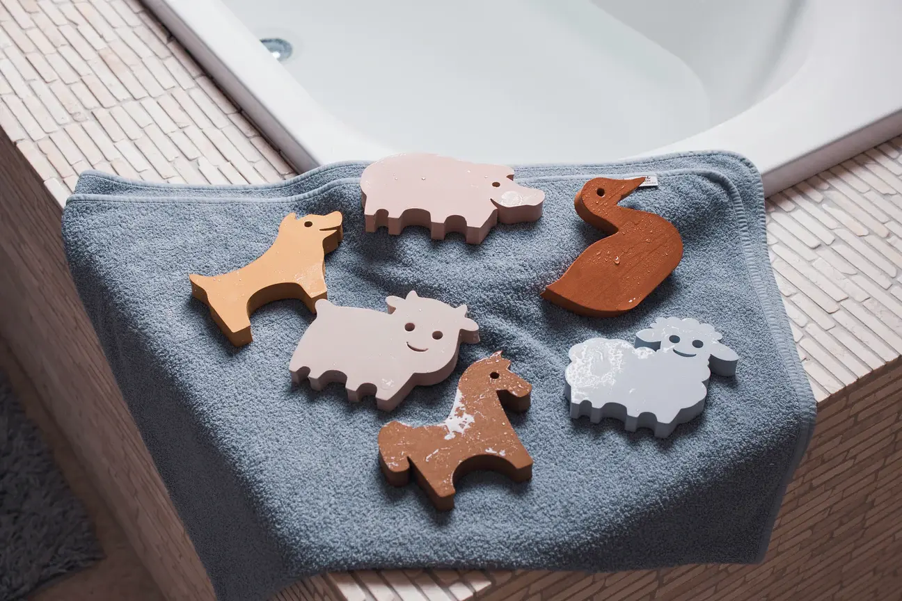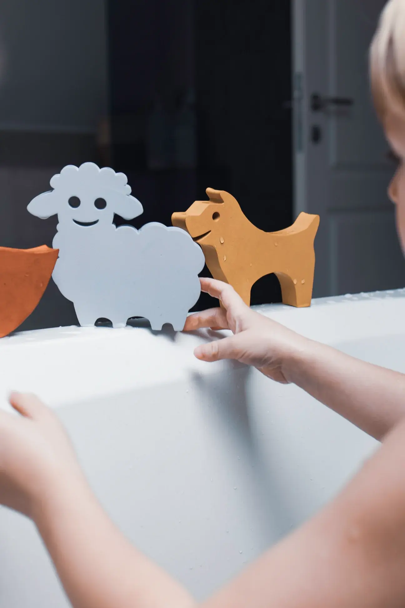 Je kind kan de dieren aan de badwand plakken, stapelen,... de mogelijkheden en verbeelding zijn eindeloos. Formaat dieren: 15 x 15 cm.