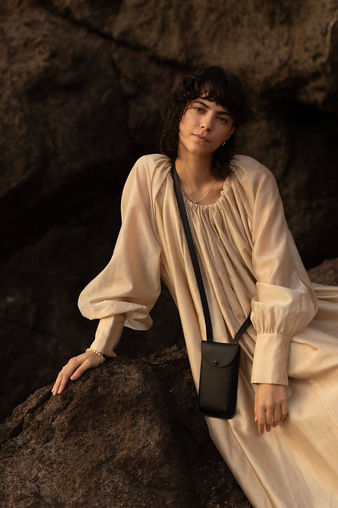 De phone pouch uit de collectie van Monk & Anna is eenvoudig en elegant. Met zijn neutrale kleur zwart maak je je outfit helemaal af én heb je je telefoon altijd bij de hand.
