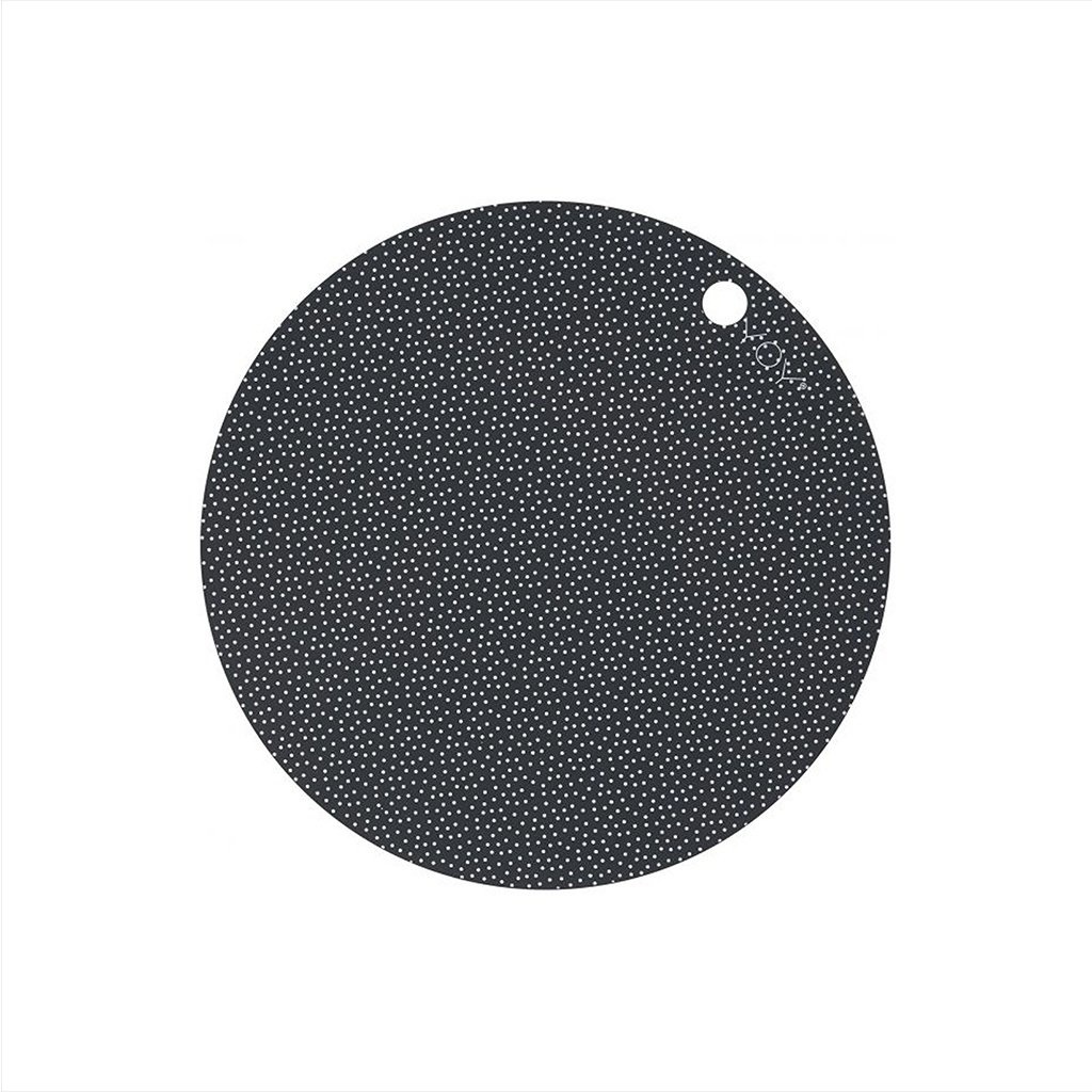 HuisparfumsVerlichtingKussens en plaidsMeubelsBadkamerDeurmattenBeschrijvingOYOY PLACEMAT DARK GREY/DOT ROND SET VAN 2