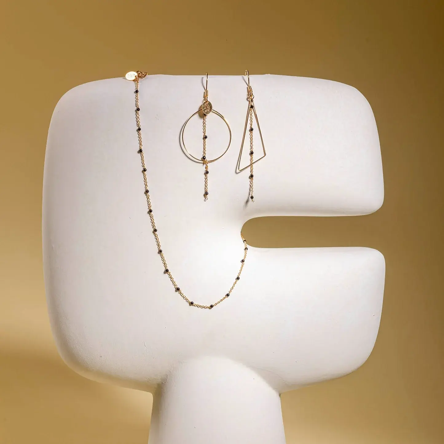 Deze hippe collier van Murielle Perrotti is goudkleurig. De ketting heeft zwarte onyx accenten en is een echt fashion statement. Combineer met bijpassende oorringen voor optimaal effect: mix en match!