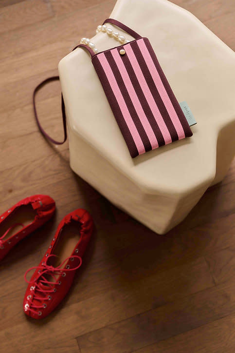 HuisparfumsVerlichtingKussens en plaidsMeubelsBadkamerDeurmattenBeschrijvingSTICKY SIS PHONE POUCH KNITTED CHOCOLATE BUBBLEGUM