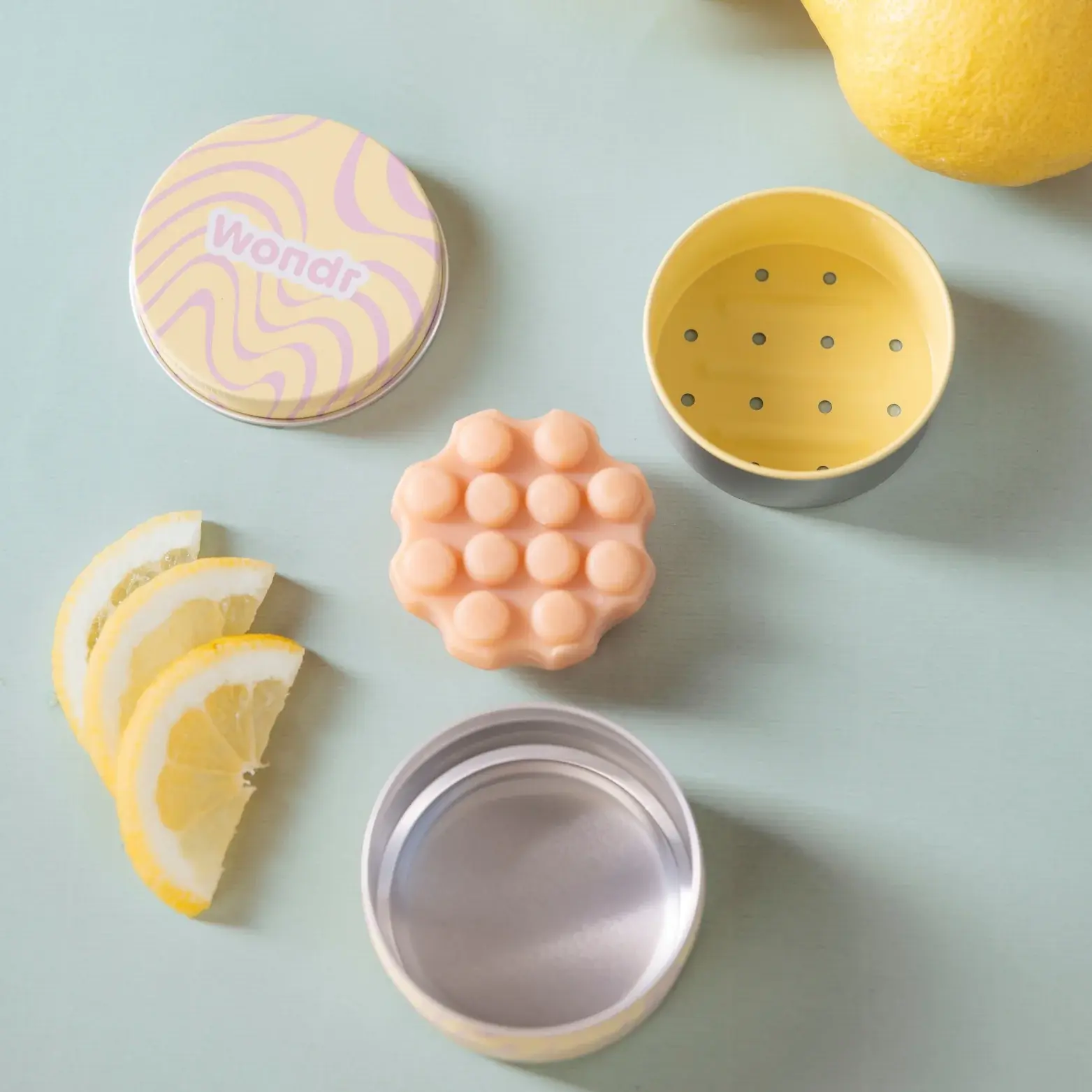Deze onmisbare travel case is gemaakt van metaal en is geel met lila. Het bakje met schroefdeksel is bovendien lek- en roestvrij. Het is geschikt voor de kleine Wondr bars.