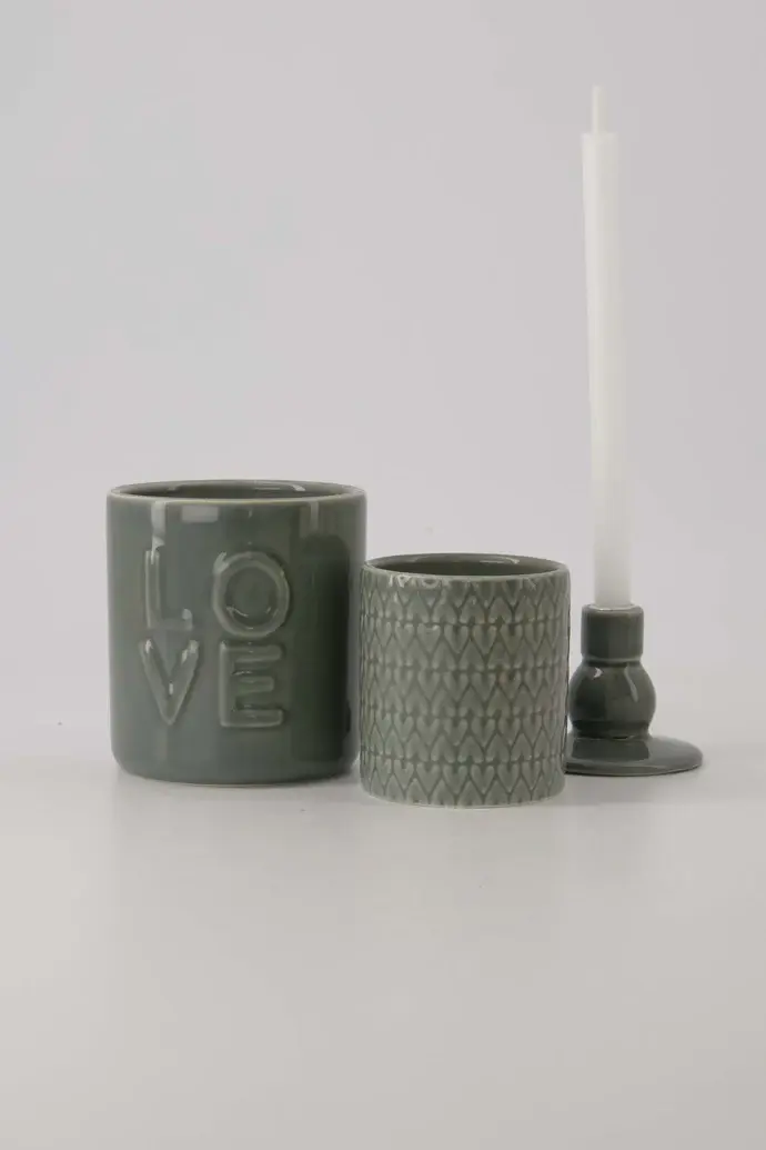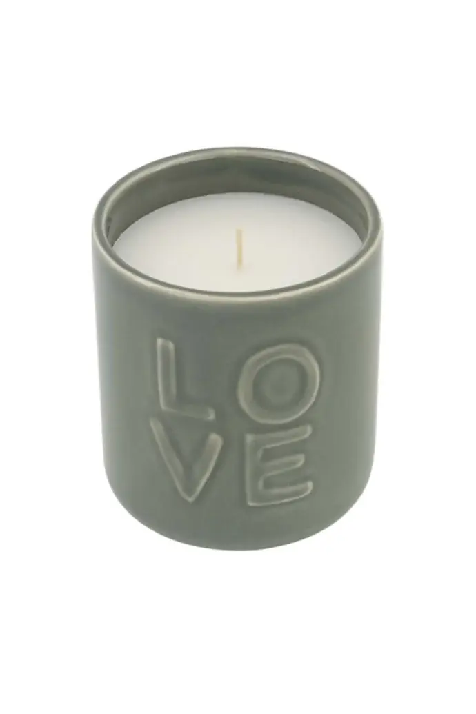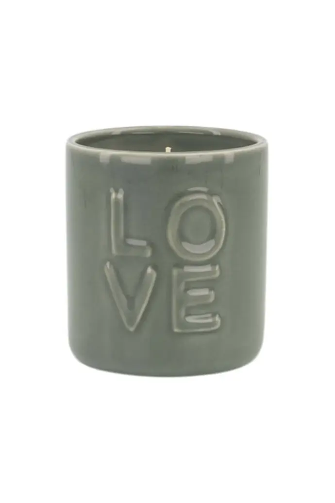 Deze geurkaars zit in een donkergroen keramieken potje. Op het potje staat de tekst 'Love'. Leuk op zichzelf of te combineren met andere Zusss theelichtjes.