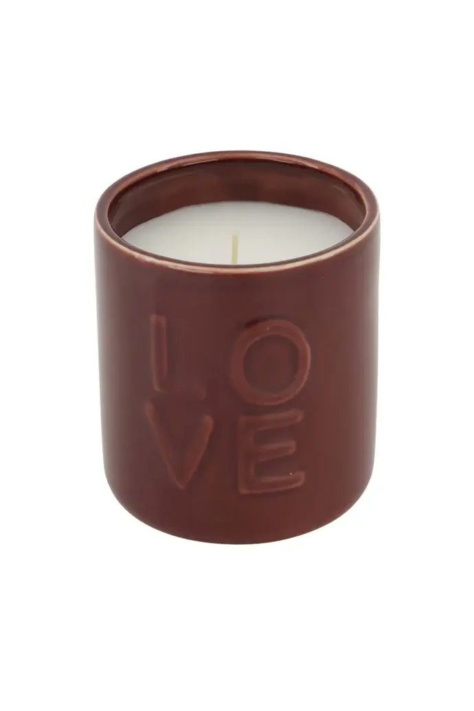 Deze geurkaars zit in een portkleurig keramieken potje. Op het potje staat de tekst 'Love'. Leuk op zichzelf of te combineren met andere Zusss theelichtjes.