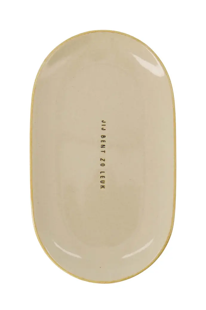 Deze schaal van Zusss heeft een zachte zandkleur. Op de schaal staat de tekst 'Jij bent zo leuk'. Gebruik ze voor koekjes, pralines, fruit of ander lekkers. Het is ook een leuk schaaltje voor tapas of andere hapjes.