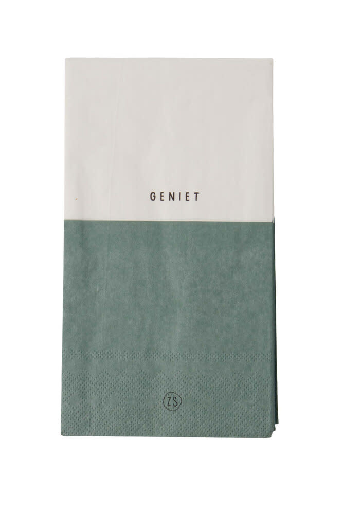 Maak je tafel extra gezellig met deze rechthoekige servetten met van Zusss. De papieren servetten hebben hebben als tekst 'Geniet'.