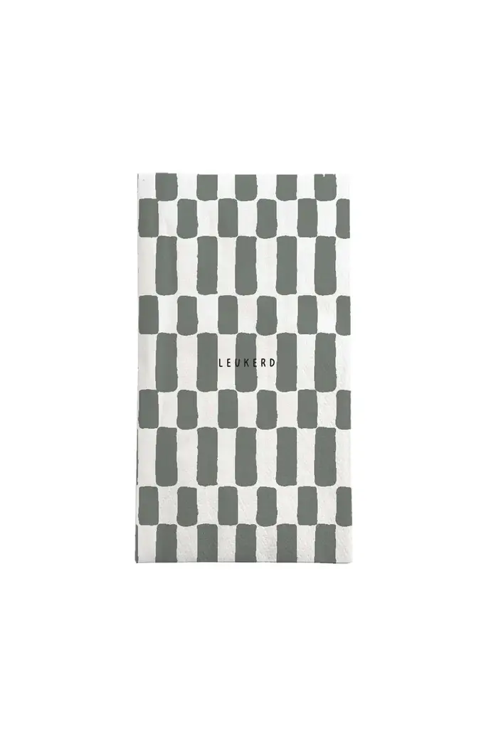 Maak je tafel extra gezellig met deze rechthoekige servetten met van Zusss. De papieren servetten hebben hebben als tekst 'Leukerd' op een print van witte en donkergroene blokjes.