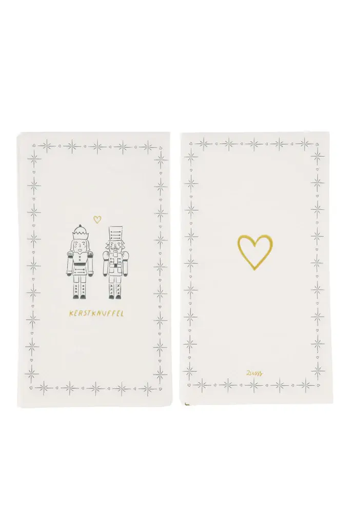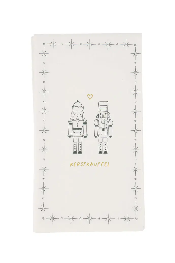 Maak je tafel extra gezellig met deze rechthoekige servetten met van Zusss. De witte papieren servetten hebben hebben als tekst 'Kerstknuffel' met langs de achterkant 2 kerstfiguren.