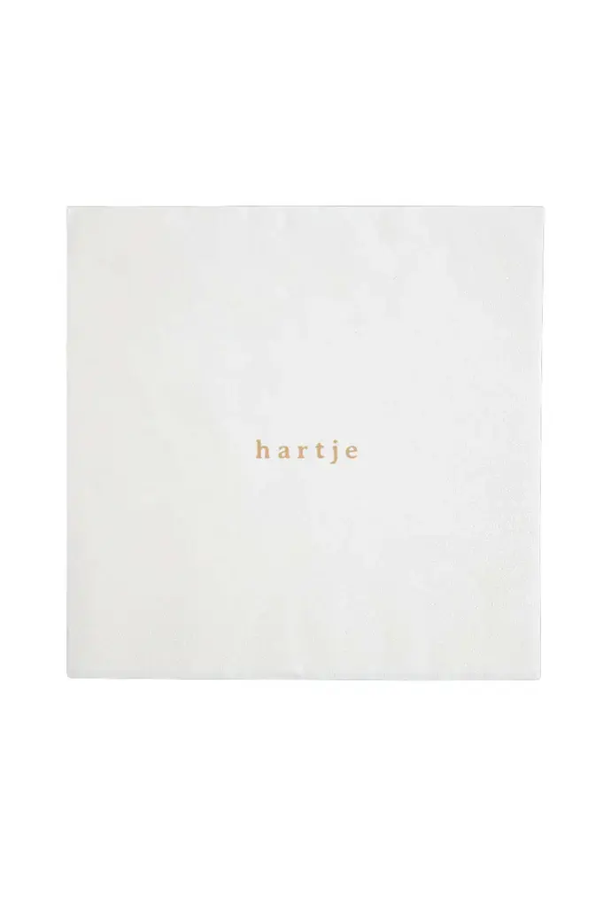 Maak je tafel extra gezellig met deze vierkante witte cocktailservetten van Zusss. Op elke servet staat de gouden tekst 'Hartje'.