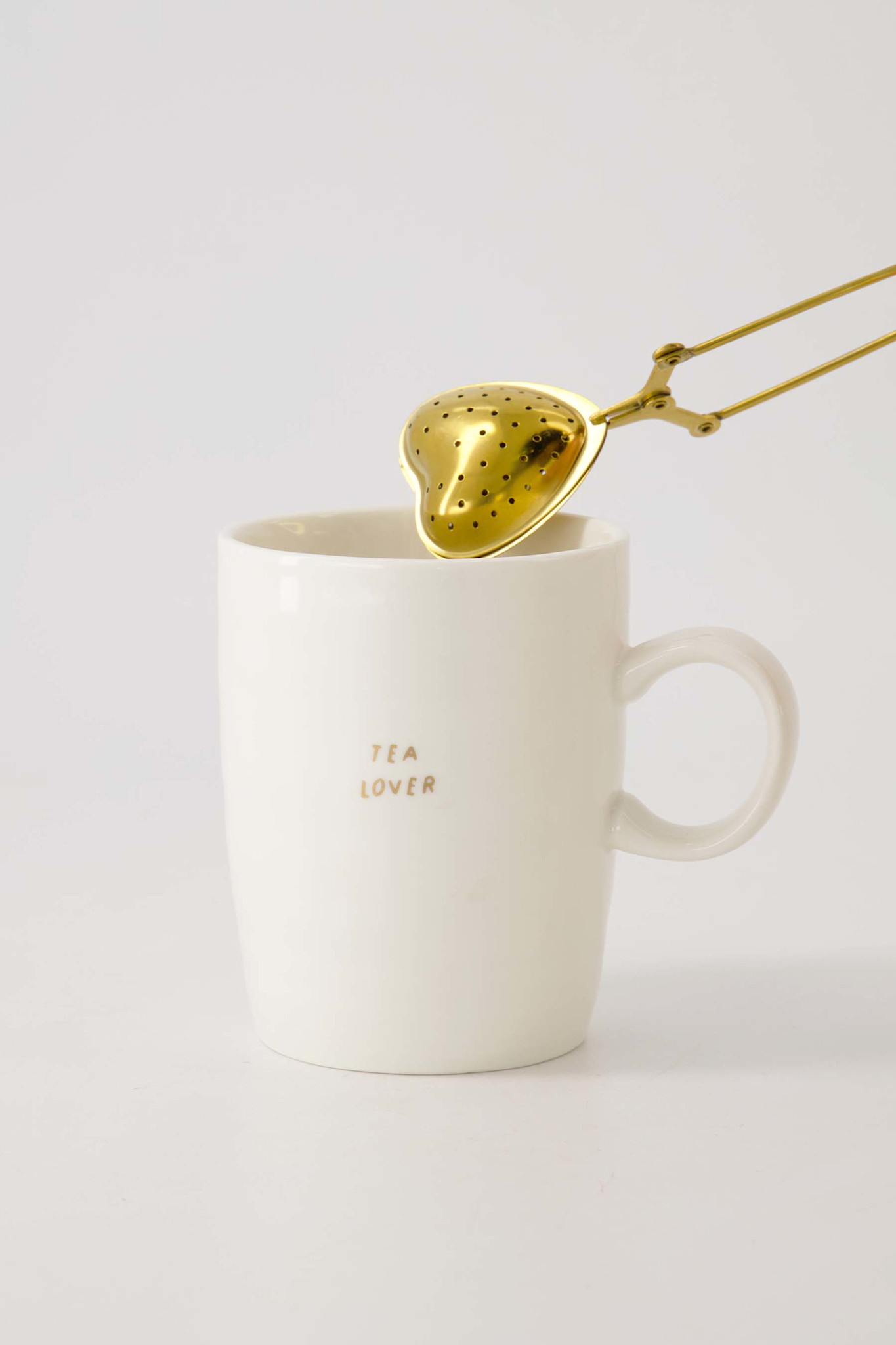 Dit gouden theezeefje gebruik je om losse thee te laten trekken in je theetas. Het heeft de vorm van een hartje en is super schattig.
