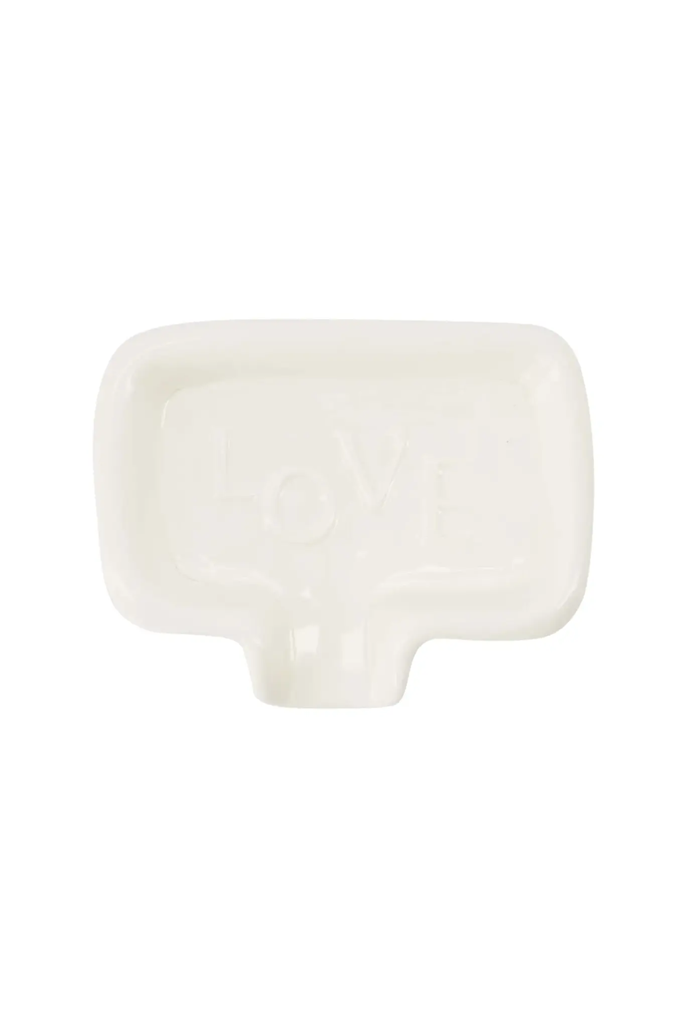 Deze zeepschaal is gemaakt van wit keramiek. Leg een stuk zeep in je badkamer, toilet of in je keuken. Op de houder staat de tekst 'Love' in reliëf.